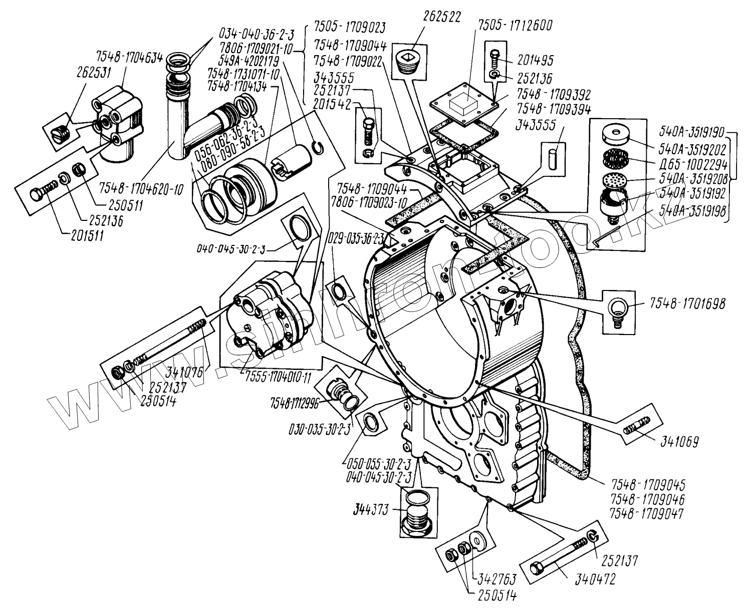 Каталог запасных частей к технике: МоАЗ 75054-22. Картер гидротрансформатора