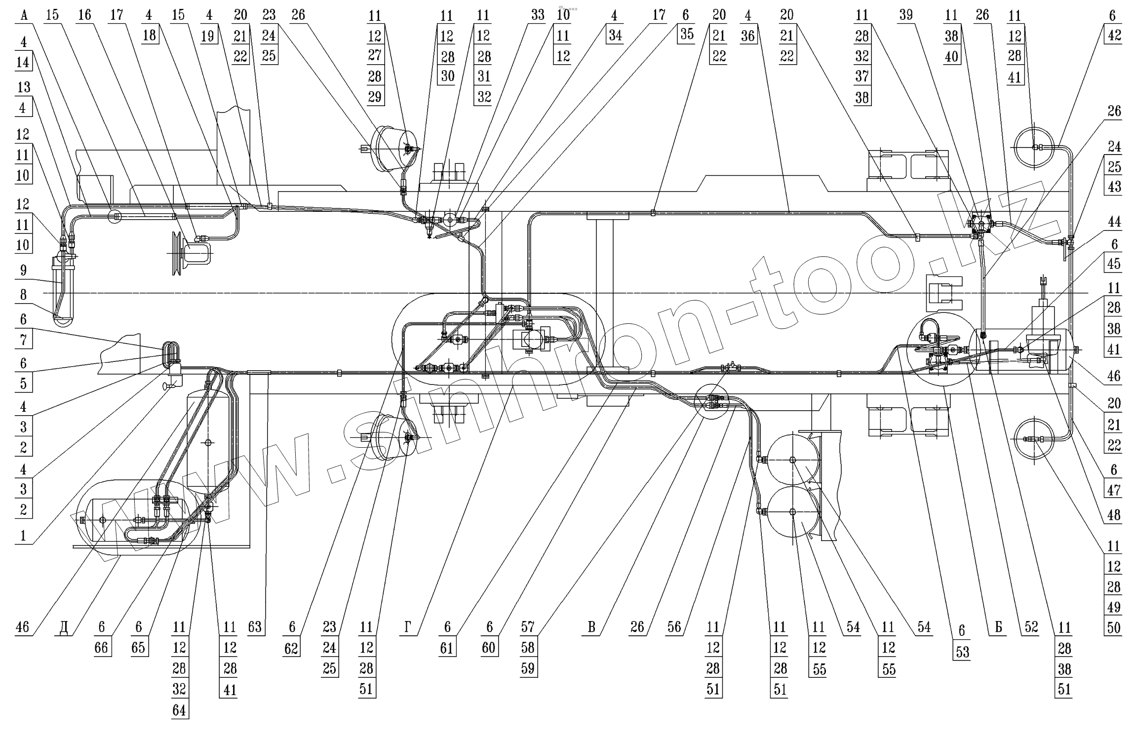 Каталог запасных частей к технике: МоАЗ 75054-22. Пневмосистема привода тормозов