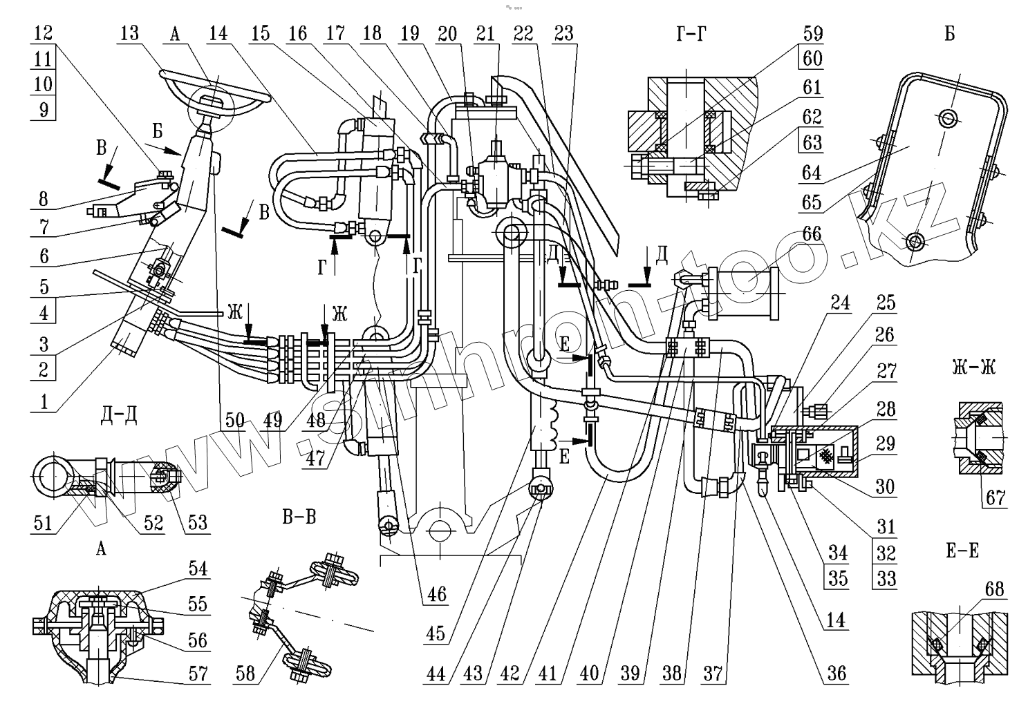 Каталог запасных частей к технике: МоАЗ 75054-22. Схема установки рулевого управления