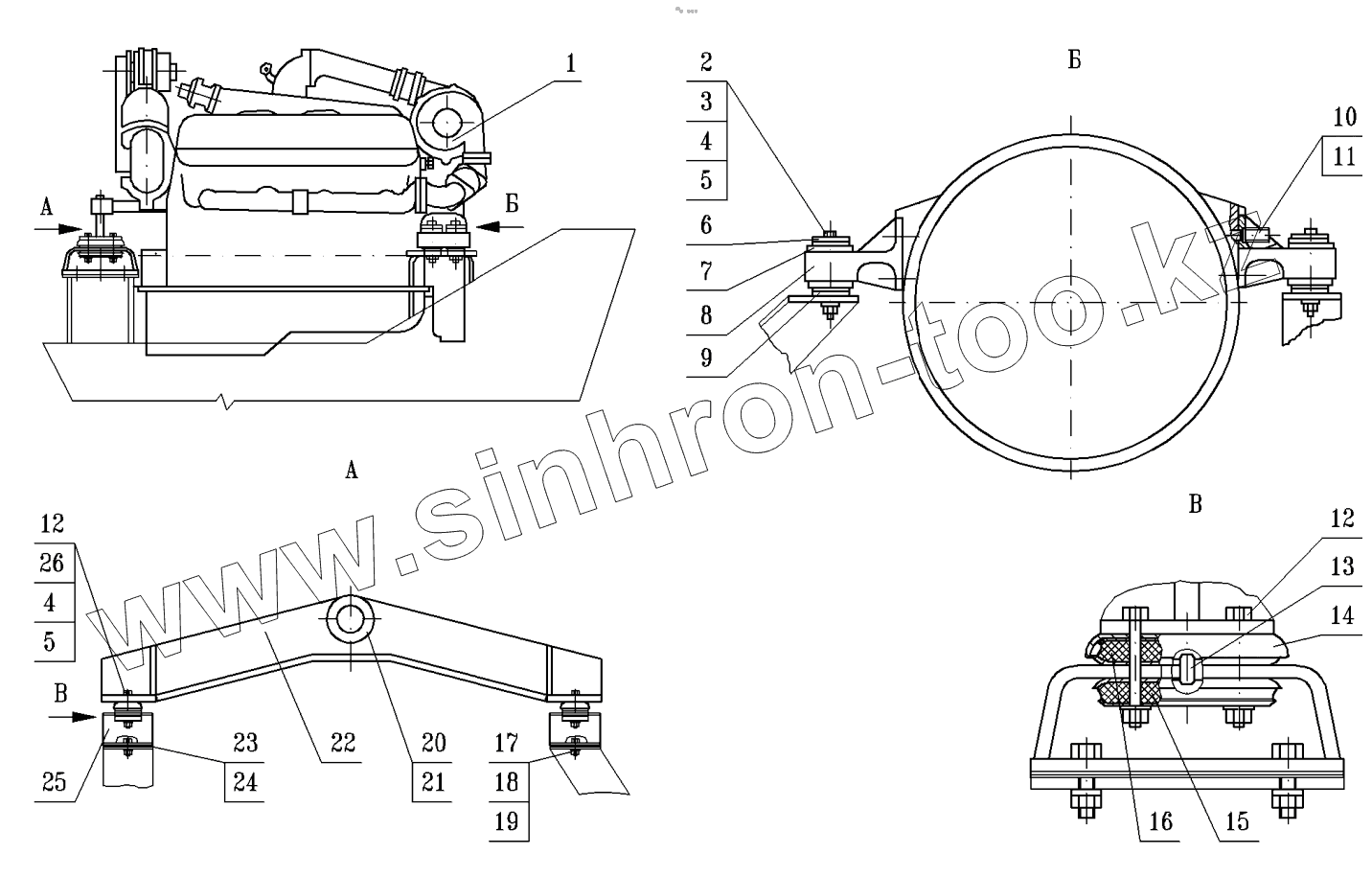 Каталог запасных частей к технике: МоАЗ 75054-22. Установка двигателя