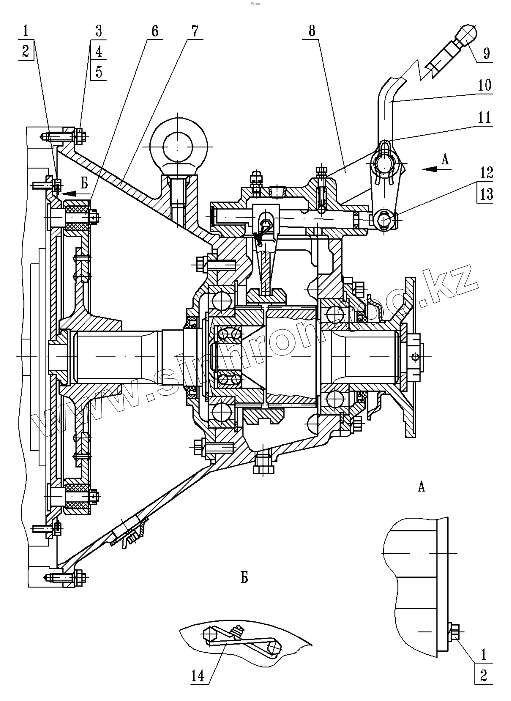 Каталог запасных частей к технике: МоАЗ 75054-22. Установка механизма отключения трансмиссии