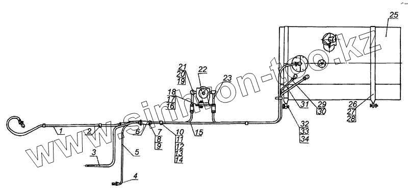 Каталог запасных частей к технике: МоАЗ 7505. Бак топливный. Монтаж трубопроводов
