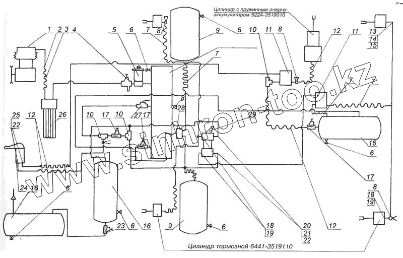 Каталог запасных частей к технике: МоАЗ 7505. Пневмосистема тормозов 7505-3500003