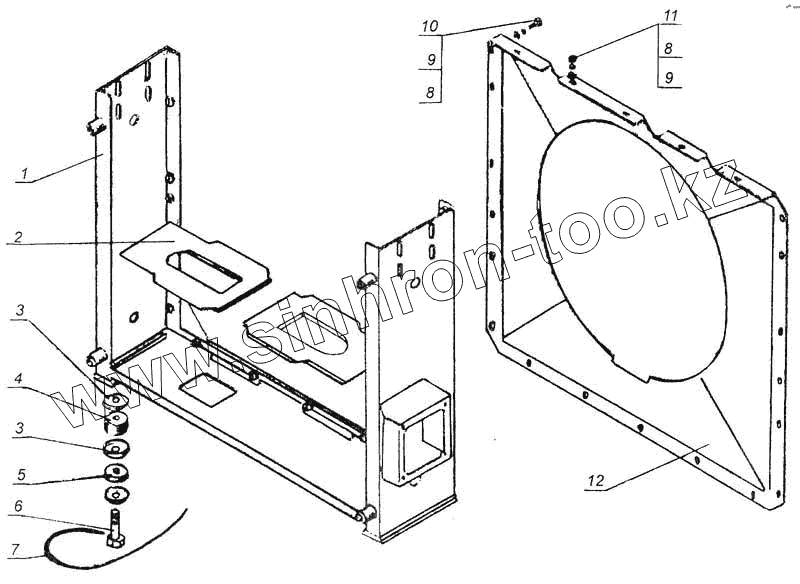 Каталог запасных частей к технике: МоАЗ 7505. Рамка радиатора и кожух