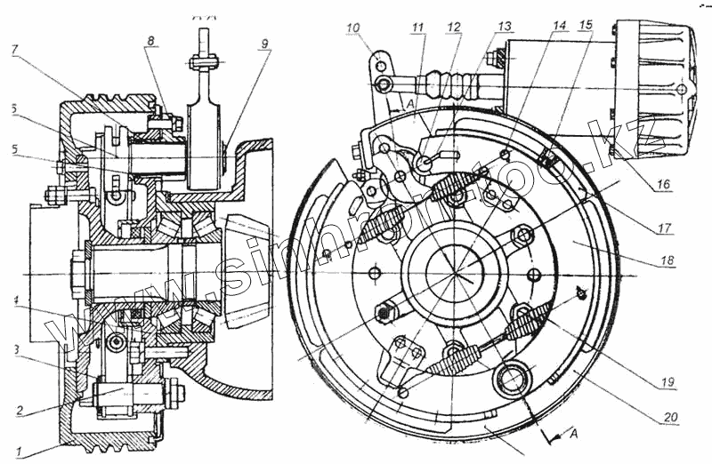 Каталог запасных частей к технике: МоАЗ 7505. Тормоз стояночный 7505-3507006