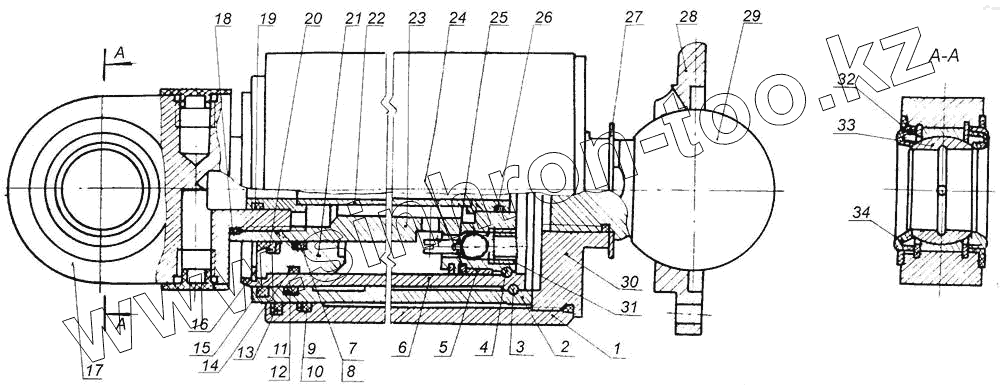 Каталог запасных частей к технике: МоАЗ 7505. Цилиндр опрокидывающего механизма 540А-8603009-20