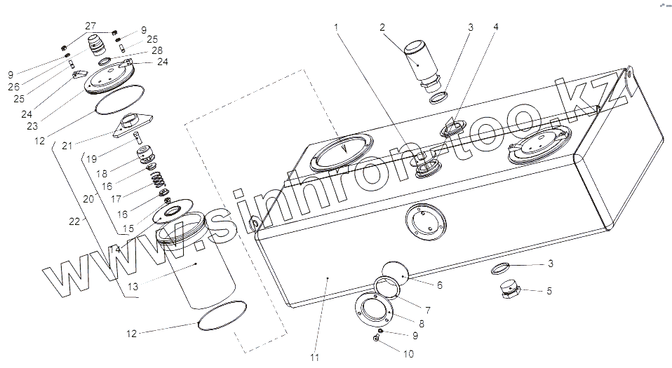 Каталог запасных частей к технике: МЗКТ-65151 "Волат". Бак 65151-8608010