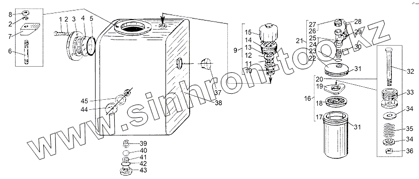 Каталог запасных частей к технике: МЗКТ-65151 "Волат". Бак масляный 65158-3410010-20
