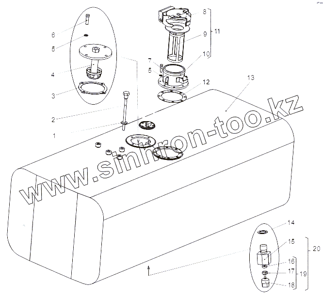 Каталог запасных частей к технике: МЗКТ-65151 "Волат". Бак топливный 6525-1101010