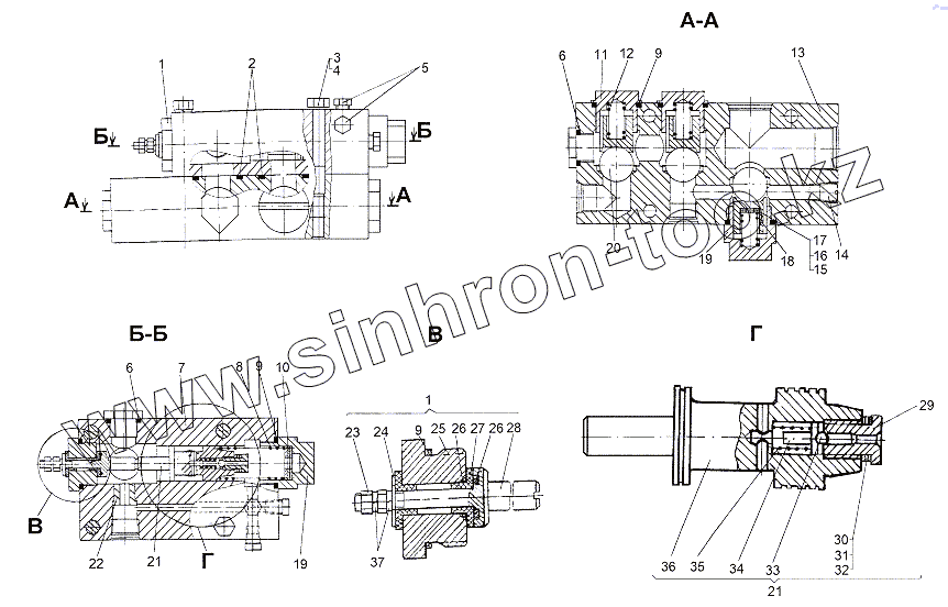 Каталог запасных частей к технике: МЗКТ-65151 "Волат". Блок клапанов 6923-3420010-10