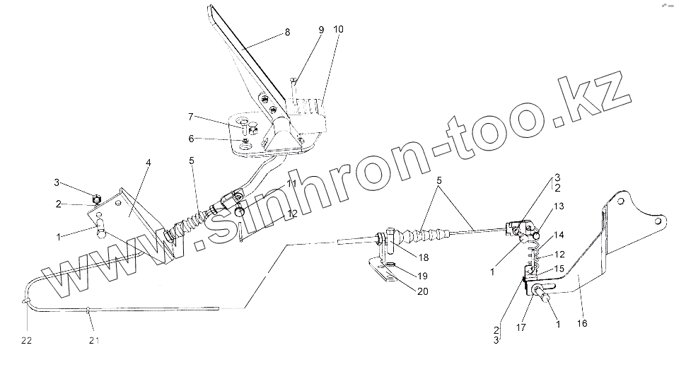 Каталог запасных частей к технике: МЗКТ-65151 "Волат". Привод управления двигателем 65151-1108005