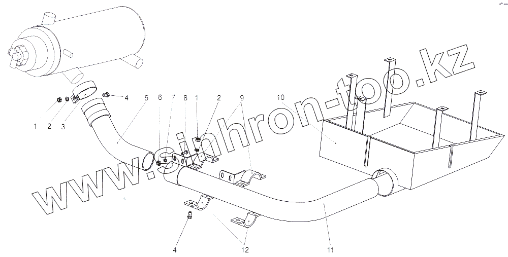 Каталог запасных частей к технике: МЗКТ-65151 "Волат". Система выхлопа подогревателя (ПЖД)
