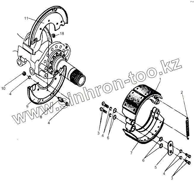 Каталог запасных частей к технике: МЗКТ-65151 "Волат". Тормоз среднего моста