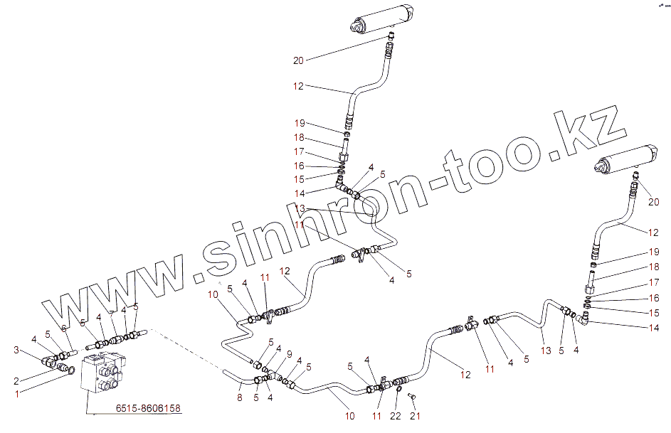 Каталог запасных частей к технике: МЗКТ-65151 "Волат". Трубопроводы механизма подьема борта