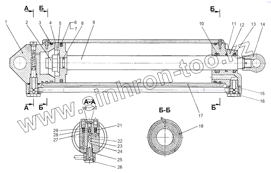 Каталог запасных частей к технике: МЗКТ-65151 "Волат". Цилиндр гидравлический 79092-5003010-10