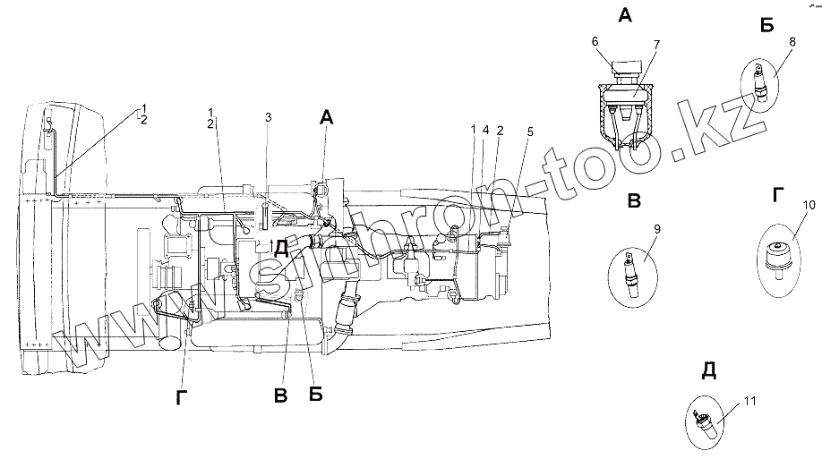 Каталог запасных частей к технике: МЗКТ-65151 "Волат". Установка электрооборудования двигателя