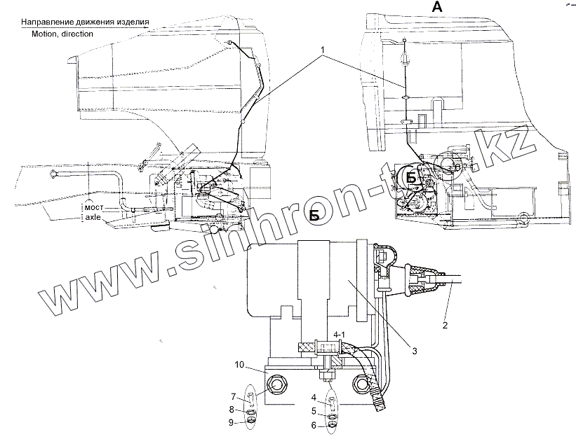 Укладка трубопроводов пневмоподвески кабины