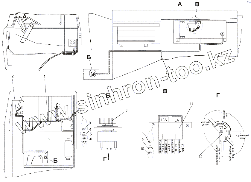 Каталог запасных частей к технике: МЗКТ-65151 "Волат". Установка электрооборудования воздушного отопителя