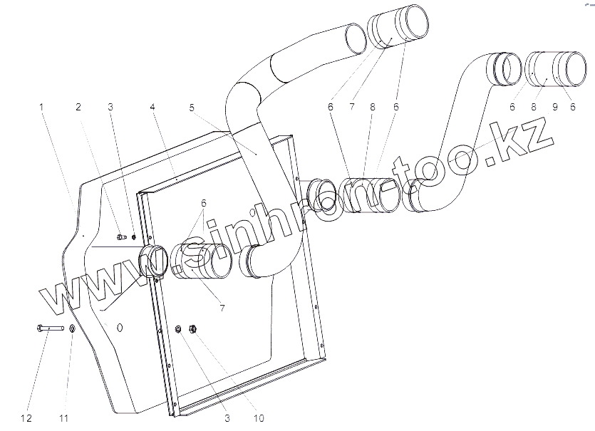 Каталог запасных частей к технике: МЗКТ-65151 "Волат". Установка охладителя наддува