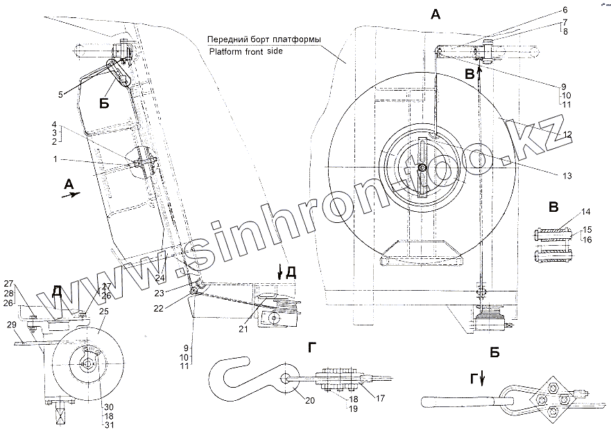 Каталог запасных частей к технике: МЗКТ-65151 "Волат". Установка подъемника запасного колеса