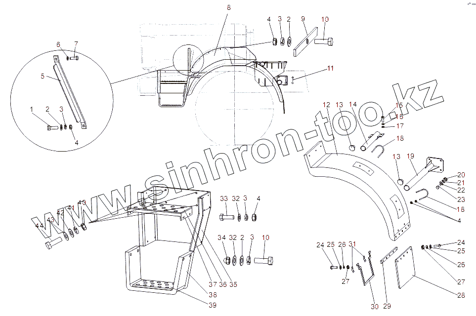 Каталог запасных частей к технике: МЗКТ-65151 "Волат". Установка подножек