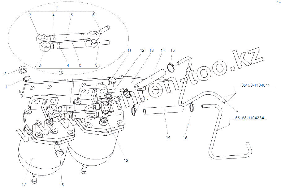 Каталог запасных частей к технике: МЗКТ-65151 "Волат". Установка топливных фильтров грубой очистки