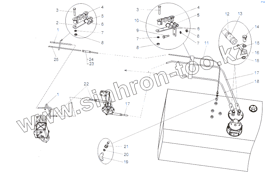 Каталог запасных частей к технике: МЗКТ-65151 "Волат". Установка топливопроводов