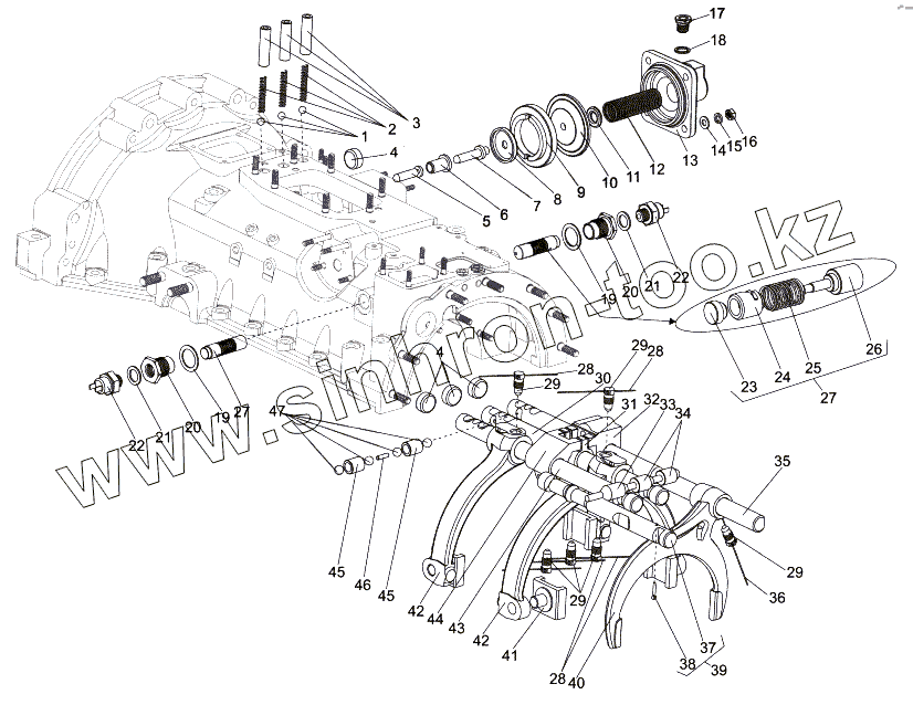 Каталог запасных частей к технике: МЗКТ-65151 "Волат". Установка вилок переключения передач