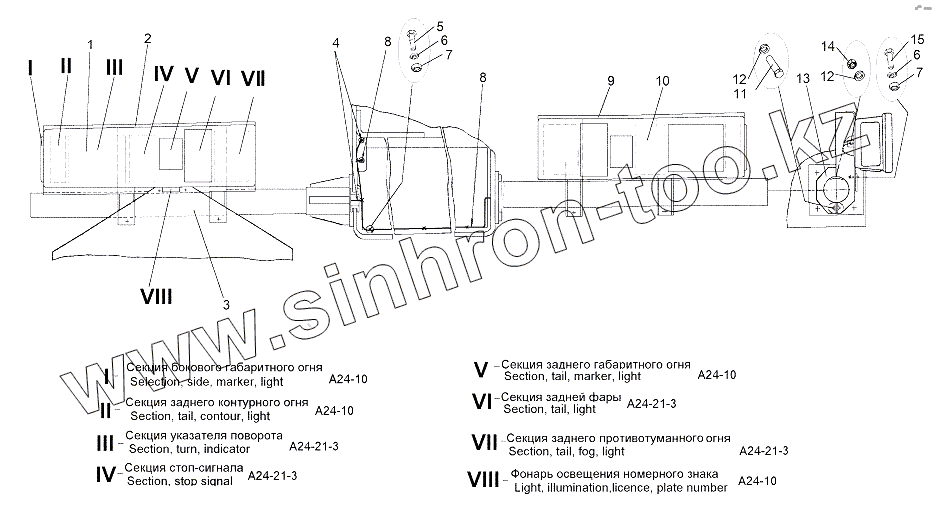 Каталог запасных частей к технике: МЗКТ-65151 "Волат". Установка задних фонарей