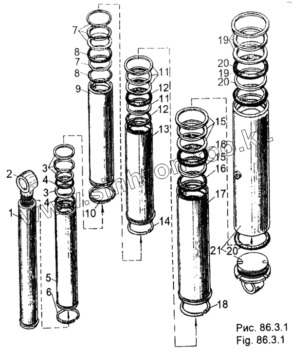 Каталог запасных частей к технике: МЗКТ-65158. Гидроцилиндр 6515-8603010-02