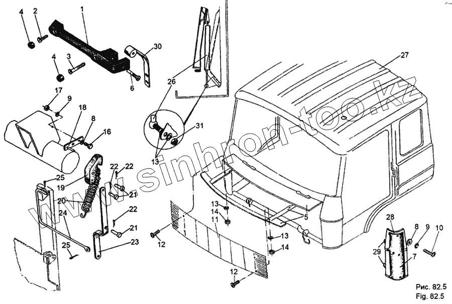 Каталог запасных частей к технике: МЗКТ-65158. Каракас кабины