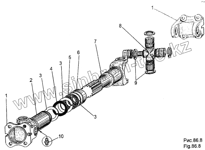 Каталог запасных частей к технике: МЗКТ-65158. Карданный вал привода насоса 79111-1760040