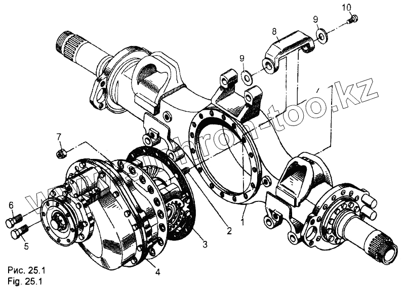 Каталог запасных частей к технике: МЗКТ-65158. Мост средний. Редуктор с картером моста