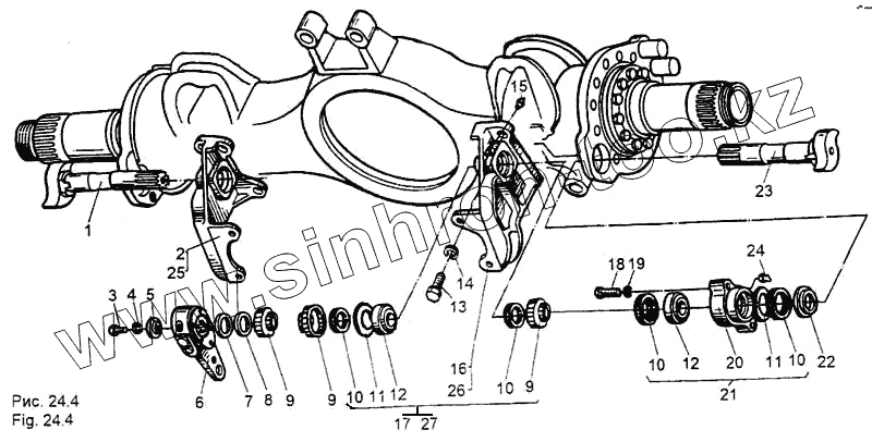 Каталог запасных частей к технике: МЗКТ-65158. Мост задний и средний. Привод тормозов