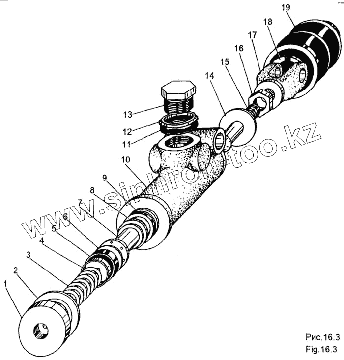 Каталог запасных частей к технике: МЗКТ-65158. Подпедальный цилиндр 69237-1602300