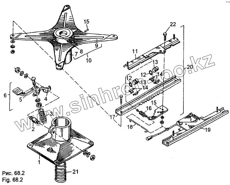 Каталог запасных частей к технике: МЗКТ-65158. Подставка сиденья и регулировочные механизмы