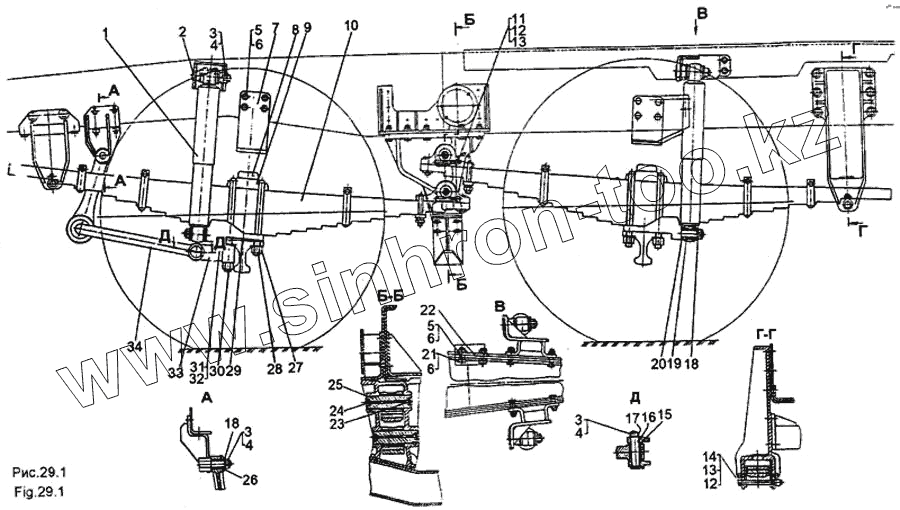 Каталог запасных частей к технике: МЗКТ-65158. Подвеска передняя