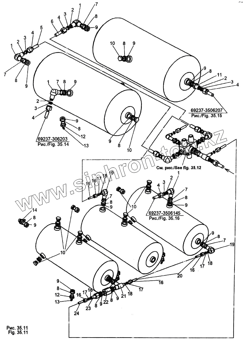 Каталог запасных частей к технике: МЗКТ-65158. Присоединительная арматура к ресиверам