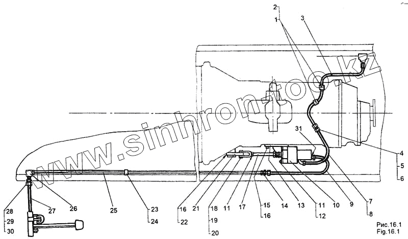 Каталог запасных частей к технике: МЗКТ-65158. Привод управления сцеплением