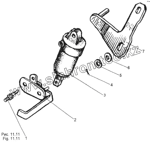 Каталог запасных частей к технике: МЗКТ-65158. Привод выключения двигателя дублирующий