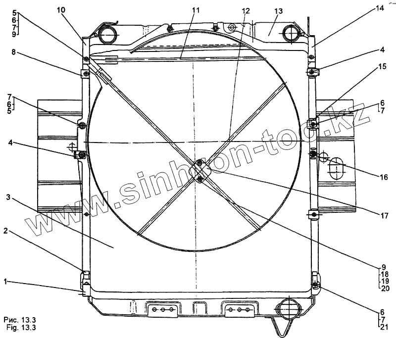 Каталог запасных частей к технике: МЗКТ-65158. Радиатор с кожухом 64229-1301009