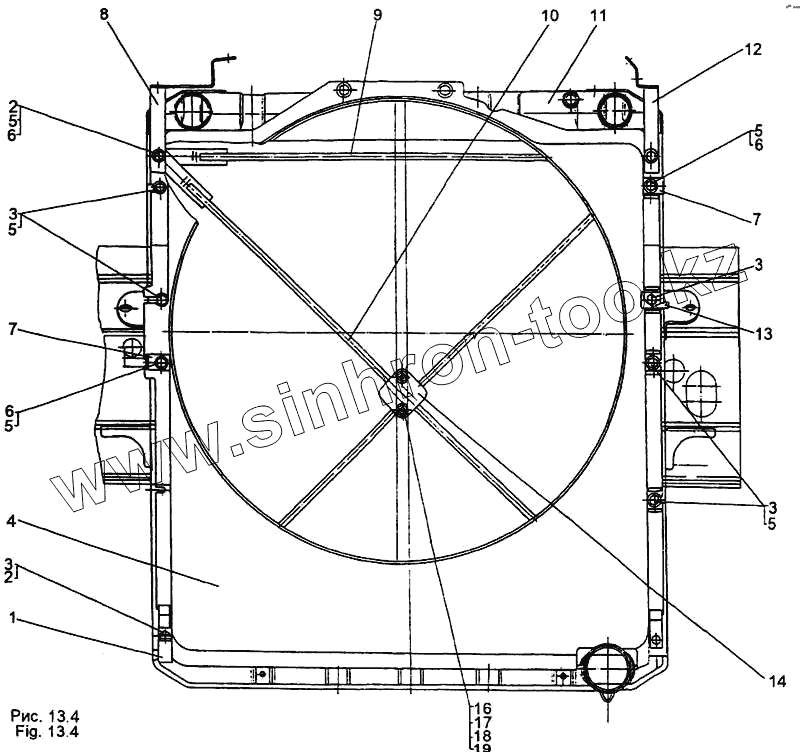 Каталог запасных частей к технике: МЗКТ-65158. Радиатор с кожухом 64229-1301009-01