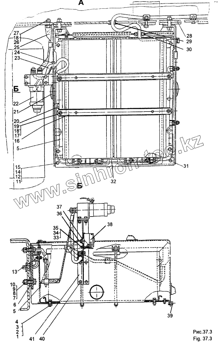 Каталог запасных частей к технике: МЗКТ-65158. Установка контейнера и аккумуляторных батарей