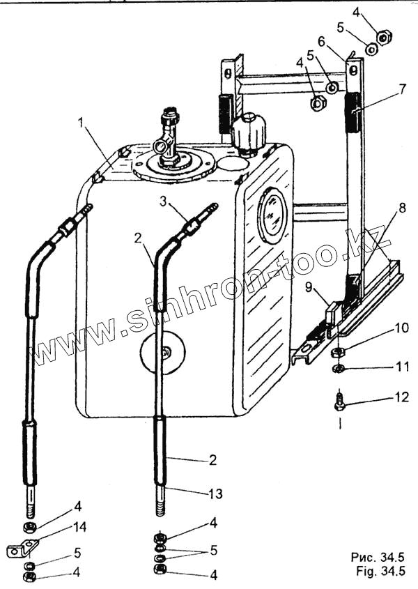 Каталог запасных частей к технике: МЗКТ-65158. Установка масляного бака