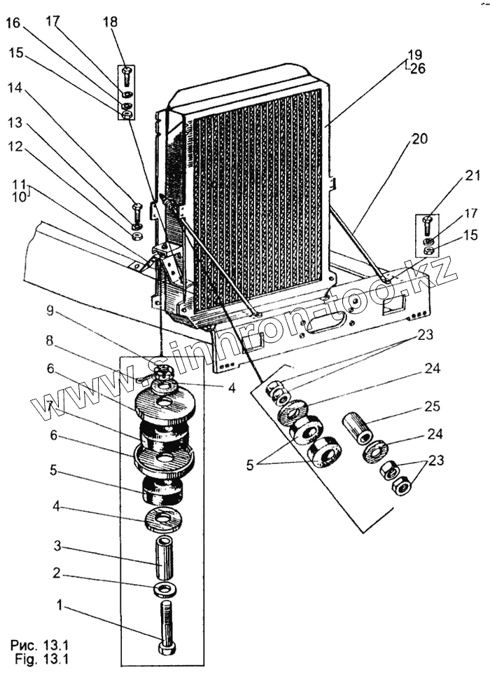 Каталог запасных частей к технике: МЗКТ-65158. Установка радиатора