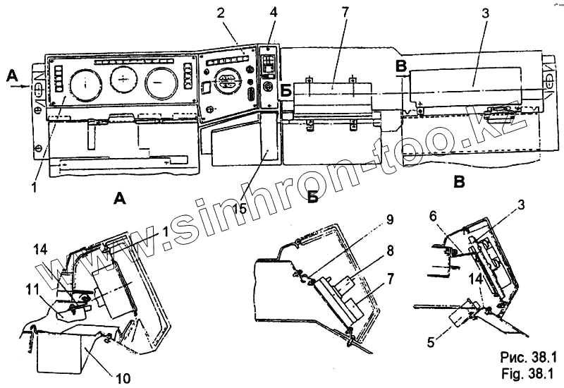 Каталог запасных частей к технике: МЗКТ-65158. Установка щитков приборов и коммутационной аппаратуры