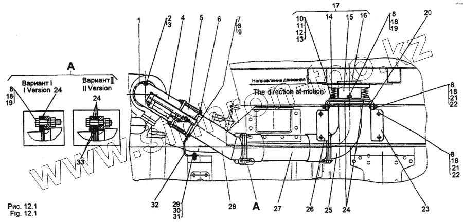 Каталог запасных частей к технике: МЗКТ-65158. Установка системы выпуска отработанных газов