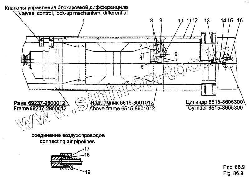Каталог запасных частей к технике: МЗКТ-65158. Установка трубопроводов системы управления