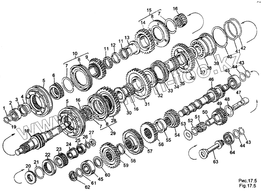 Каталог запасных частей к технике: МЗКТ-65158. Валы и шестерни коробки передач