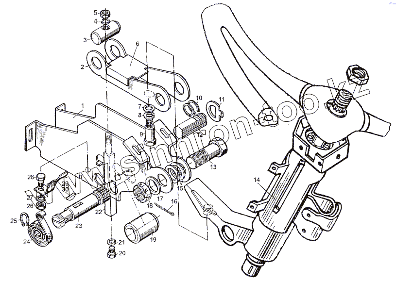 Каталог запасных частей к технике: МЗКТ-652511. Кронштейн с колонкой 64221-3403008